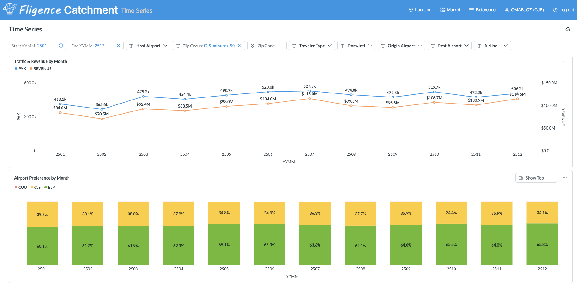 The platform also features interactive time series visualizations, allowing you to track O&D volume and revenue trends by municipality / ZIP code across months or years. Whether you want to monitor recovery in key markets, evaluate the impact of marketing campaigns, or identify seasonal demand shifts, our tool gives you the granularity and flexibility you need to act with confidence.