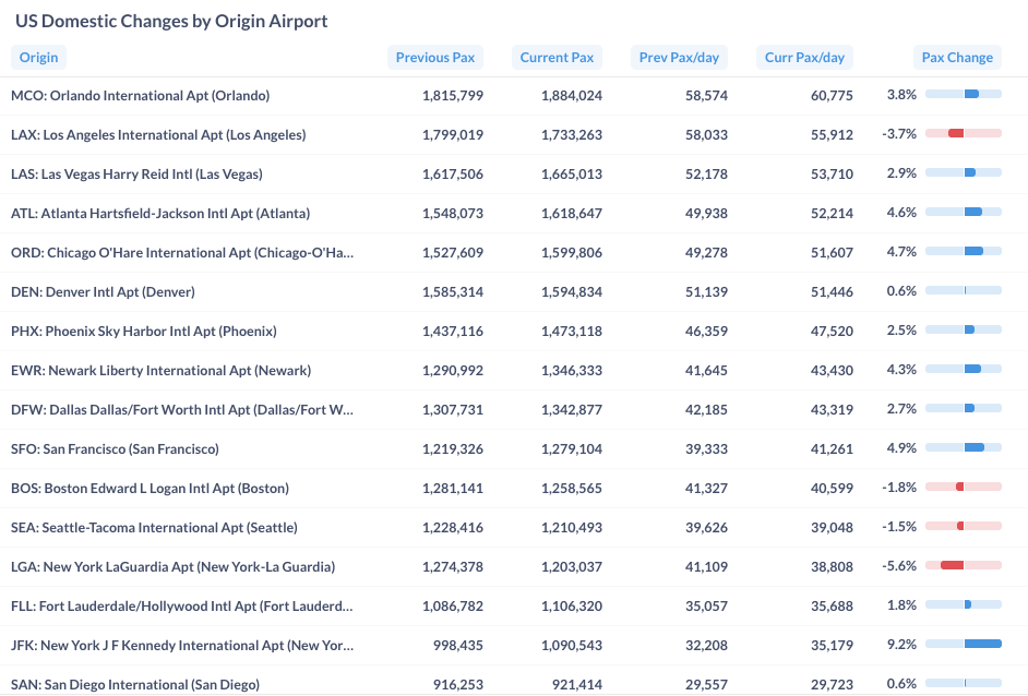 For more detailed information on traffic and fares by route and airline, please contact service@flightbi.com or request a demo of Fligence USOD. They will be able to provide you with customized information to meet your specific needs and requirements.