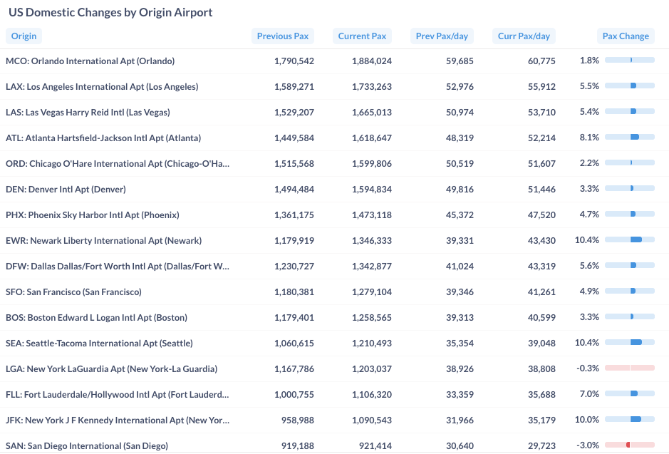 Figure 7: Domestic Air Traffic by Top Origin Airport in December 2025 (Current) vs. December 2024 (Previous)